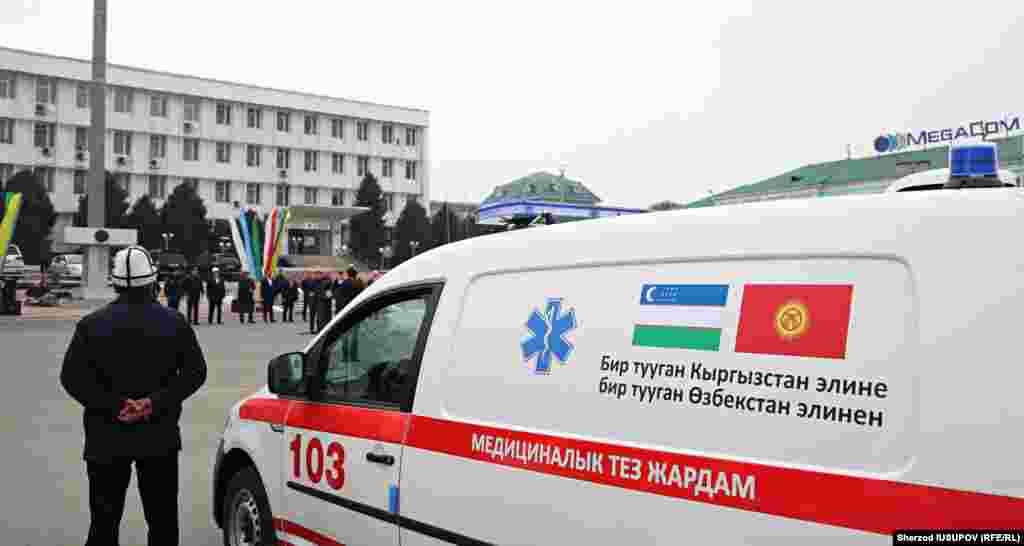 Тез ёрдам автомашиналарини Ўш шаҳри марказий майдонида Қирғизистон расмийларига Ўзбекистон номидан Андижон вилояти хокими ўринбосари Ботир Хамроев топширди.