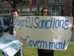 “Биз санкциялар кучайтирилиши тарафдоримиз. Европага кириши тақиқланган 12 ўзбек амалдори рўйхатига Ўзбекистондаги қатағонлар бошида турган президент Ислом Каримов номи ҳам киритилсин”, - дейди пикет қатнашчиси Муҳиддин Қурбонов.