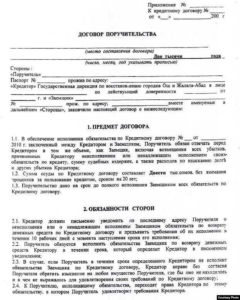 - Бу ерда бундай ëзиб қўйилганда. "Заëмщик действует согласно постанавлению правительства Киргизской Республики" дебдию¸ лекин бу постанавление қачон чиққан¸ қайси номерда¸ қанақа постанавление¸ нима деб аталган¸ ҳеч қандай сўз йўқ. Бу ерда иккита нарса борда. Бу ерда ëзаяпти “Государственная дирекция по востановлению городов Ош и Жалалабад, именуемым в дальнейшим Госдирекция в лице генерального директора Сотволдиева¸ действующего на основании положения. На основании какого положения?