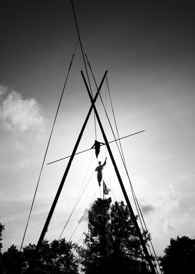 Томоша тугай деганда, лангарчўпни елкасига ташлаб дор устига чиқиб олган энг чапдаст дорбоз-масхарабоз хўўв пастдаги томошабинларнинг олқишларига жавобан ҳайқиради: