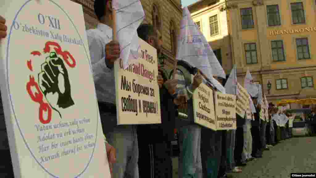 2 сентябр куни эрталаб соат 10.30 да Швеция парламенти биноси олдида Ўзбекистон Халқ ҳаракатининг 60 дан зиёд фаоли йиғилди. Улар ўз чиқишларида Ўзбекистонда 20 йилдан буён қатағон сиёсати давом этаётгани, президент Каримов диктатураси даврида минглаб одамнинг виждон тутқунига айлангани ҳақида гапирдилар