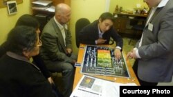 Петербурглик рассом Ольга Житлина ва “Мемориал” жамияти эксперти Андрей Якимовлар Россия мигрантлари учун мўлжалланган “Россия – имкониятлар мамлакати?” номли стол устида ўйналадиган ўйин тақдим этдилар.