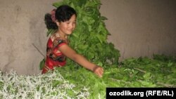 Хоразмлик 12 ёшли Нигина ҳам 6 ёшидан бошлаб ота-онасига қурт боқишга кўмаклашади.