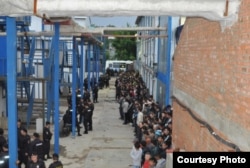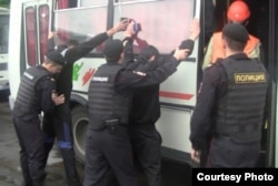 Подмосковъенинг Реутово шаҳри фуқароси Vadik Melnikov томонидан авторегистраторга олинган тасвирда 150 га яқин меҳнат муҳожирининг полиция ва ОМОН қуршовида бири-бирининг елкасига қўлини қўйиб, шаҳар марказий кўчаларидан олиб кетилаётгани тасвирланган.