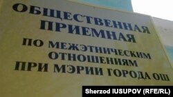 Жамоатчилик қабулхонаси Миллатлараро муносабатлар бўйича давлат агентлиги ҳамда Ўш шаҳар мэрияси ҳамкорлигида очилди. Қирғизистон Халқлар ассамблеясидан олинган маълумотга кўра, Қирғизистоннинг барча вилоят ва шаҳарларида бу каби йигирмата жамоатчилик қабулхоналари очилиши керак. Ўш шаҳрида 24 апрель куни очилган қабулхона уларнинг ўн саккизинчисидир.