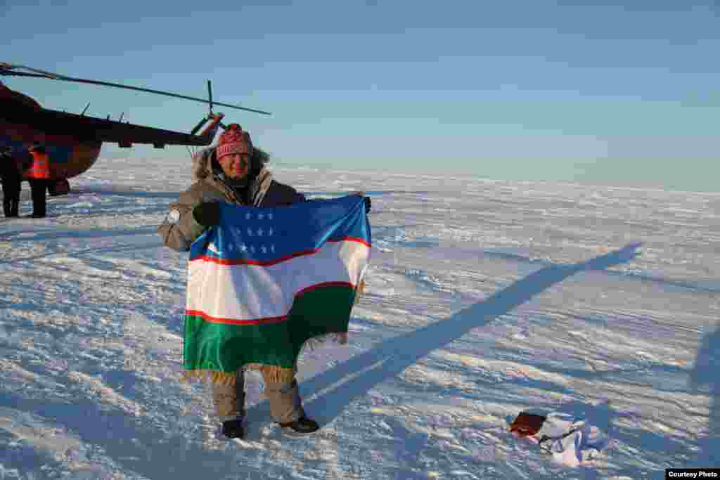 Шимолий қутбга Ўзбекистон байроғи тикилди