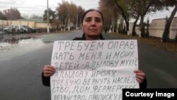 -Нимага мен бу аҳволдаман деб,“дод” деб, кеча мен резиденцияга бордим. Қўлимда плакат бор эди, “Мени ва менинг оилам оқлансин. Менинг ва фарзандларимнинг топталган ҳуқуқлари тиклансин”, деб ёзилган эди плакатда. Резиденциядан бир мелиса ходими чиқиб, қўлимдаги плакатимни йиртиб ташлади. Кейин паспортимни талаб қилиб, қўлимдан тортди. Мен: ”Сенинг ҳақинг йўқ. Мен ноҳақ қамоқда ўтириб чиққан 71га кирган аёлман”, деб қўлидан паспортимни тортиб олдим. Мелиса ходими “Паспортни ксерокопия қилиб келасиз”, деб уч соат мени издеватся қилиб турди.