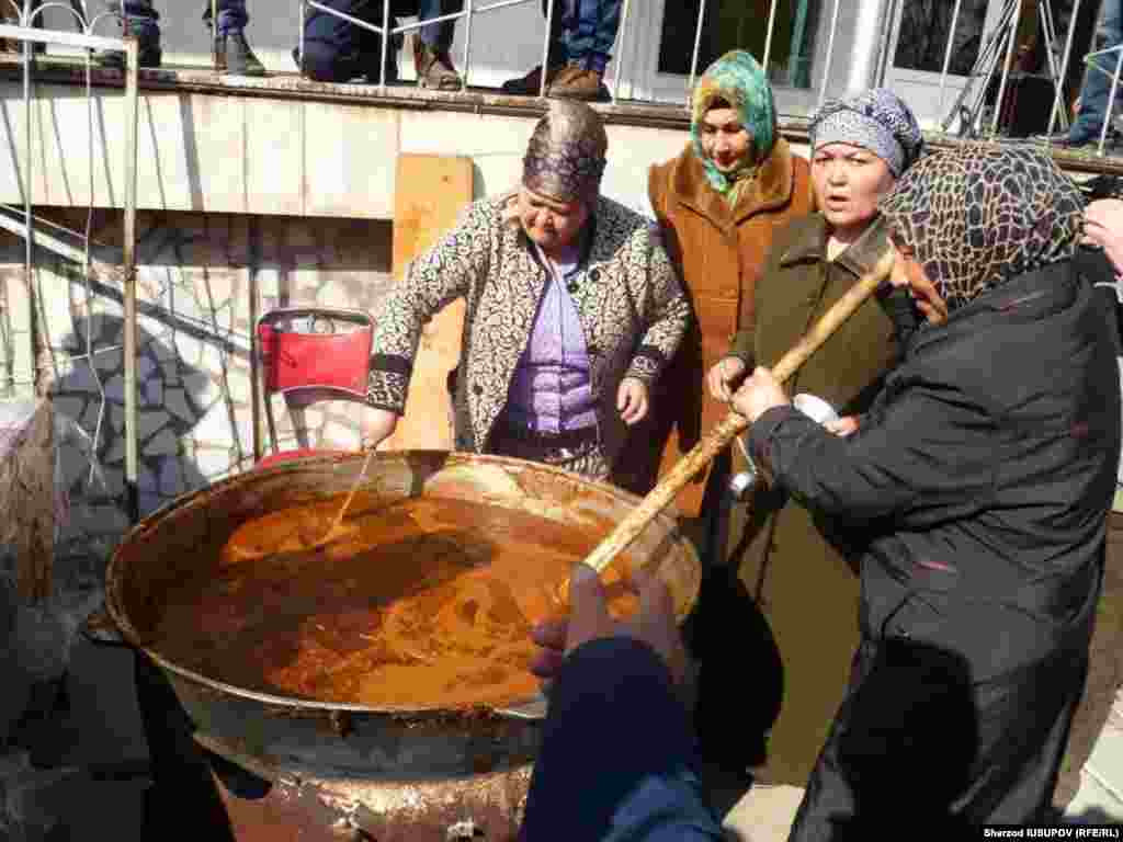 Меҳмонларга аввал сумалак улашилди. Сўнгра меҳмонларга шаҳардаги ўзбек мактаби ўқувчилари томонидан тайёрланган миллий таомлар билан Бобур театрида саҳна кўринишлари ҳавола этилди.