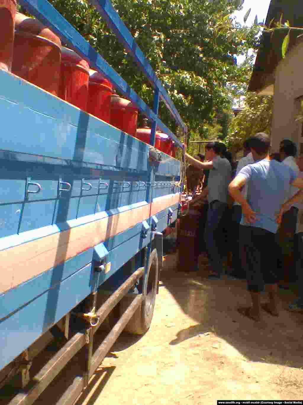 Наманган вилояти Поп тумани Пунгон шаҳарчасида аҳолига газ баллонлари тарқатилмоқда.