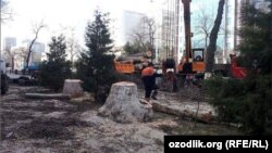 Чилонзорликлар чинор кесгани келган ишчиларнинг йўлини тўсиб олишди
