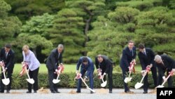 Обама Хироcимада ҳалок бўлганлар хотирасига ёқилган мангу олов олдига гулчамбар қўйди.
