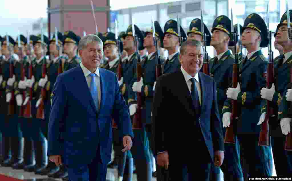 Президент Шавкат Мирзиёев 5 сентябрь куни Қирғизистон вақти билан соат 14да Бишкекка давлат ташрифини амалга ошириш учун келди. “Манас” аэропортида Миллий гвардия фахрий қоровули тизилиб, Шавкат Мирзиёев ва унинг рафиқаси Зироатхон Мирзиёевани Қирғизистон президенти Алмазбек Атамбаев рафиқаси Раиса Атамбаева билан кутиб олди.
