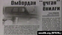 Қарши аэропорти омборидан йиллар давомида Б-92 маркали авиабензин ўғирлангани фош этилди, деб хабар беради Қарши шаҳри прокурори Отабек Қўлдошев “Ҳуқуқ” газетаси орқали. Аэропорт омбори мудири Б.Қодиров ва етакчи мутахасссис О.Равшанов жиноий режа тузиб, ёнилғи резервуарига яширин қувур ўрнатишган ва у орқали ҳафтасига 600-800 литрдан ёнилғи ўғирлаган. Қайд этилишича, тўрт йил давомида аэропорт омборидан 346,2 миллион сўмлик авиабензин ўмарилган. Айбдорларга тегишли жазо тайинлангани хабар қилинган.