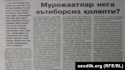 Самарқанд вилояти Каттақўрғон туманидаги айрим мутасадди ташкилот раҳбарлари халқ мурожаатига эътиборсизлик ва сансалорликка йўл қўймоқда (“Жамият”, 27 октябрь). Масалан, Сиплон қишлоғида яшовчи Дилшода Содиқованинг 2017 йил 22 мартда рўйхатга олинган ёки Чиғатой маҳалласида яшовчи Абдумалик Муродуллаевнинг 17 апрелда рўйхатга олинган мурожаатига ярим йилдан ошса-да, жавоб берилмаган. “Мурожаатларга юзаки қараш, унинг туб моҳияти билан қизиқмаслик, муаммоларнинг ечимини излаш ўрнига уни яшириш каби ҳолатларга қандай баҳо беришни билмайсан киши... Бугун айрим мутасадди раҳбарлар фуқароларнинг муаммолари юзасидан шахсий жавобгарликни унутиб қўяётгани ҳам сир эмас. Бундай раҳбарларга нисбатан тегишли чоралар кўрилмас экан, Халқ билан мулоқот ва инсон манфаатлари йили ғояларини амалда рўёбга чиқариш қийин бўлиб қолаверади”, дейди Ўзбекистон президентининг Каттақўрғон туманидаги Халқ қабулхонаси мудири Аслиддин Муродов.