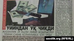 Жиззахлик 29 ёшли Ғайрат Кулибаев Тошкент шаҳрида компьютер ўйини сабаб қотилликка қўл урди (“Даракчи”, 18 октябрь). Ғ.Кулибаев “Махсустранс” корхонаси ҳудудий бўлимида ишлаган. Ишдан бўш вақтларида интернет орқали спорт мусобақаларига пул тикиб ўйнаб келган. Охирги пайтларда виртуал қимор ўйинига боғланиб қолиб бор-буди ва ишидан айрилган, қарзга ботган. Шундан кейин қарздан қутулиш учун виртуал қимор ўйини учун пул олиб турадиган таниши Е.Радченконинг уйига ўғриликка тушган. Ўғриликка гувоҳ бўлиб қолган уй соҳибининг танишини чавақлаб ўлдирган. Жиноят ишлари бўйича Тошкент шаҳар суди раиси Бахтиёр Исломовга кўра, қотилликда айбланган судланувчи 18 йилга озодликдан маҳрум этилган. Қайд этилишича, Ғ.Кулибаевнинг вояга етмаган фарзанди ва оиласи бор.