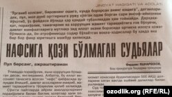 Urganchda 12 ming AQSh dollari pora talab qilgan sudya qamaldi.Bosh prokuror jinoyatlarni yashirish holatlari hamon uchrayotganini tan oldi. Joriy haftada mahalliy matbuotmana shular haqida yozdi.