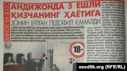 Андижонда “ҳайвон қилмаган иш”га қўл урган жиноятчи 19 йилга қамалди. Озодлик сайти нега тўсиқдан чиқарилмагани юзасидан расмий изоҳ сўралди. 5 яшар қизчанинг ҳаётига зомин бўлган педофил 19 йилга озодликдан маҳрум этилди. Жорий ҳафта матбуот шу каби воқеалар ҳақида хабар берди.