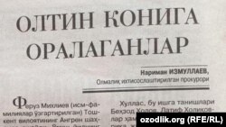 Олмалиқ кон-металлургия комбинатига тегишли Кўчбулоқ олтин конида ўғрилик жинояти фош этилди. Бу ҳақда Олмалиқ ихтисослаштирилган прокурори Нариман Измуллаев “Ҳуқуқ” нашри орқали маълум қилган. Бир неча кишидан иборат жиноий гуруҳ Кўчбулоқ олтин конига яширинча кирган ва олтин моддаси бор рудаларни йиғиб, машинага жойлаган. Олтин руда тўлдирилган қоплар билан улар узоққа бора олмаган, ҳуқуқ-тартибот идоралари ходимлари жиноий гуруҳ аъзоларини қўлга туширган. Машинадан таркибида қимматбаҳо металл бўлган 232,5 миллион сўмлик 109 килограмм руда ва бошқа ашёвий далиллар топилгани хабар қилинган.