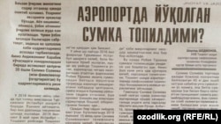 Тошкент халқаро аэропортида сумка ўғирлаган аёл қўлга тушди (“Ҳуқуқ”, 12 сентябрь).