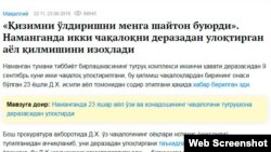 Наманган туманидаги туғруқ мажмуасининг иккинчи қавати деразасидан икки чақалоқни улоқтирган аёл шайтон амри билан шундай иш тутганини маълум қилди (www.daryo.uz, 23 cенятбрь). 9 сентябрь куни содир этилган жиноят мамлакатни ларзага солган эди. Бош прокуратура 23 ёшли Д.Х. қиз фарзанди нуқсонли туғилганидан аччиқланиб, уни ҳамда ёнидаги яна бир чақалоқни деразадан улоқтиргани ҳақида хабар берган эди. Туғруқхонанинг олий тоифали неонатологи Муҳаббат Эгамовага кўра эса, чақалоқда кўзга ташланарли оёқ нуқсони бўлмаган.