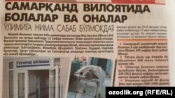 Самарқанд вилоятида оналар ва болалар ўлими юқори бўлиб қолмоқда (“Даракчи”, 24 октябрь). Жорий йилнинг 8 ойи давомида бир ёшгача бўлган 345 нафар бола ва туғиш пайтида 13 нафар она ўлими қайд этилди. Вилоят ҳокимлиги тузган ишчи гуруҳи туман ва шаҳарларда кўплаб камчиликларни аниқлаган. Хусусан, ўрганишлар жараёнида нотўғри ташхис қўйиш, касалликлар тарихи нотўғри юритилаётгани, дори воситалари тақчиллиги, муддатидан олдин туғилган чақалоқлар учун мўлжалланган сунъий нафас бериш аппарати етишмаслиги, туғруқхоналарнинг тўлиб кетгани каби ҳолатлар фош этилган. Қайд этилишича, ўтган давр мобайнида 270 нафар тиббиёт ходимига турли маъмурий жазолар тайинланган.
