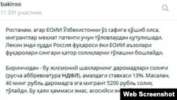 Ўзбекистонлик блогер Отабек Бакиров ўз Телеграм саҳифасида бош вазир Абдулла Ариповнинг мамлакат Евросиё иқтисодий иттифоқига қўшилса, Россиядаги кўп сонли меҳнат муҳожирларига енгиллик бўлиши борасида фикрига муносабат билдирди.