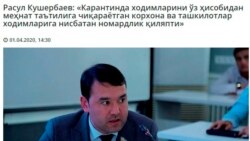 Karantin sharoitida xodimlarini o‘z hisobidan mehnat ta’tiliga chiqarib yuborayotgan korxona va tashkilotlarni xodimlariga nisbatan nomardlik qilmoqda, deb hisoblaydi Oliy Majlis Qonunchilik palatasi deputati Rasul Kusherbayev. Qayd etilishicha, buni “O‘zbekiston temir yo‘llari” kompaniyasi misolida ko‘rish mumkin. Bu holat qonunchilikka, xususan, prezidentning koronavirus pandemiyasi salbiy ta’sirini yumshatishga doir farmoniga ziddir.