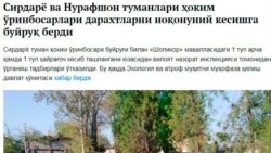 Nurafshon hokimi o‘rinbosari moratoriyga qaramay daraxt kestirdi. O‘zbek tili oldida turgan muammo faqat peshlavhayu tashqi reklamadan iborat emas Joriy hafta matbuot shu kabi voqealar haqida xabar berdi.