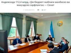 Oliy Majlis Senati hamda Hisob palatasi 2020 yilning birinchi yarmida Andijon viloyatida byudjet mablag‘i sarfini o‘rganib, jiddiy qonunbuzilishlarni aniqladi (www.xabar.uz, 6 may).