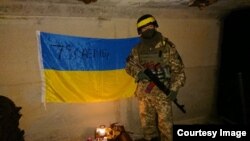 Чиндан ҳам тафовутни бир қарашда пайқаш амримаҳол. Мана, масалан, қуйидаги суратда жангчи Донецк аэропортини россияпараст айирмачилардан мудофаа қилгани билан донг қозонган 79-бригада байроғи фонида кўриниш берган. Аммо, ишончингиз комил бўлсинки, барча суратлар Япониянинг Тиба префектурасидаги хароба бинода чекилган.