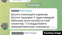 Нишонов, Озодликка тақдим қилинган скриншотларни, ИИВ ходимларининг Телеграм тармоғидаги гуруҳларидан олинганини айтмоқда.