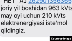 У тақдим қилган ҳисоб нусхасида унинг хонадони апрель ойида 208 кВт, май ойида эса 210 кВт электр ишлатгани қайд қилинган.