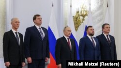Путиннинг нутқидан сўнг айирмачи “ДХР” ва “ЛХР”, шунингдек Херсон ва Запорожье вилоятлари оккупацион маъмуриятлари ушбу ҳудудлар Россия таркибига кирганлиги ҳақидаги шартномага имзо чекишди.