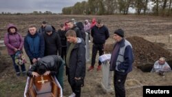 Украинанинг маълум қилишича, 5 октябр куни ҳалок бўлган украиналик аскарни мотамга йиғилганлар Харков вилоятидаги қишлоқдаги кафега рус ракетаси келиб тушган. Москва ўз босқинида тинч аҳолини нишонга олганини рад этиб келади.