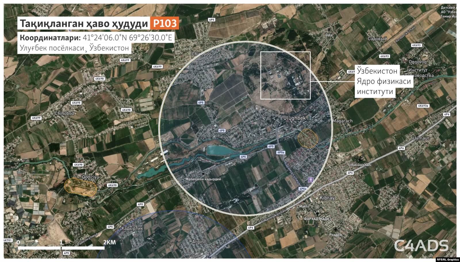 Яна бир учиш тақиқланган ҳудуд советлар давридан буён Ядро физикаси институти жойлашган Тошкентдаги Улуғбек посëлкаси устидан ўтган.