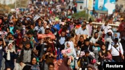 Ал-Шифа касалхонасида бошпана олган ғазоликлар жума кунги ҳужум ортидан кўрпа-тўшагини кўтариб жанубга йўл олмоқда.