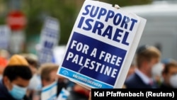 Худди шу куни Фаластин кучлари тарафдорлари ҳам намойишга чиқиб, “АҚШ ёрдамни тўхтатинг” ва “Қаршилик терроризм эмас” деган баннерларни кўтариб ҳайқиришди.