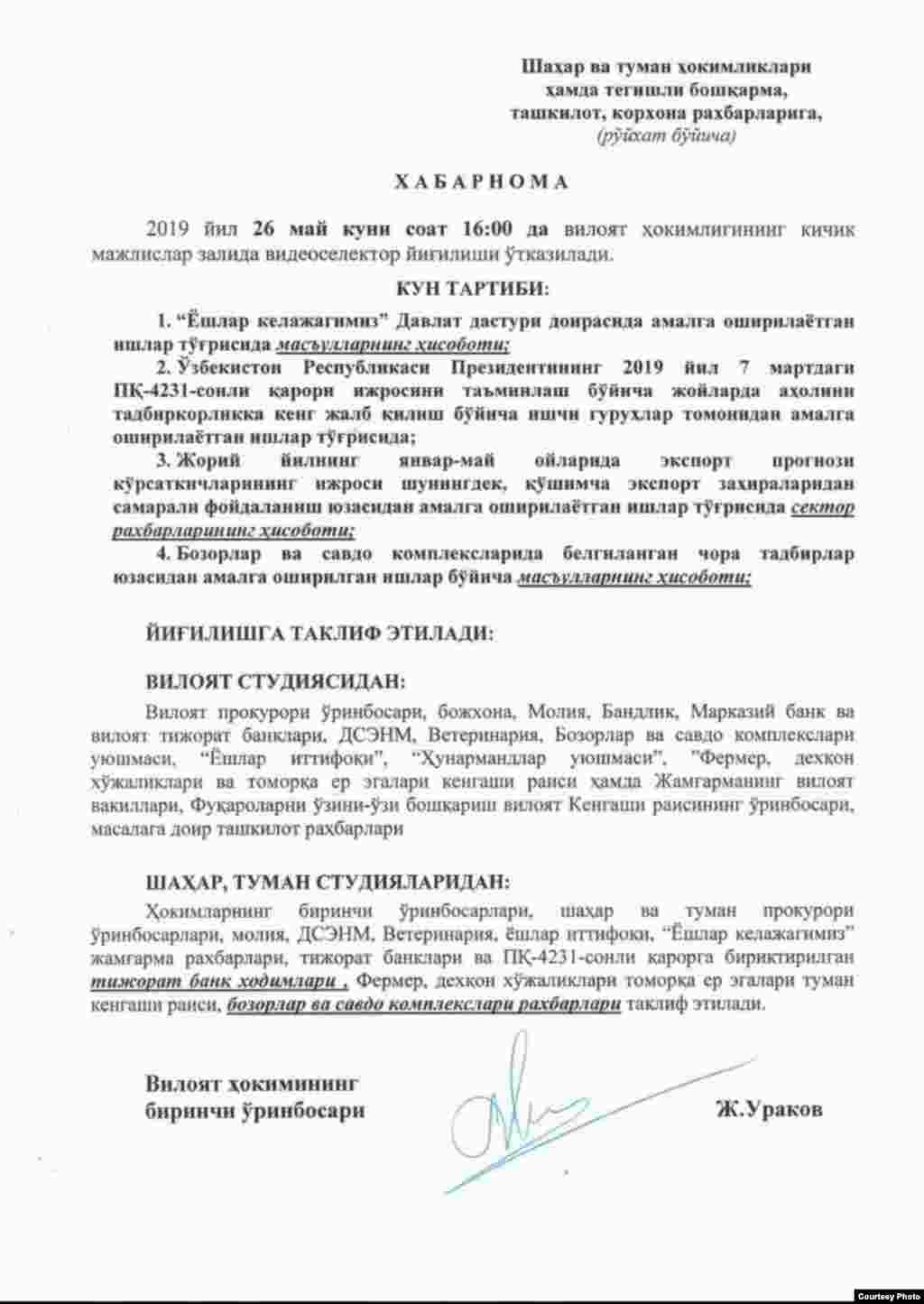 Мажлисбозлик хроникаси: Самарқанд вилоят ҳокими ўринбосари юбораëтган мажлис чақирувлари