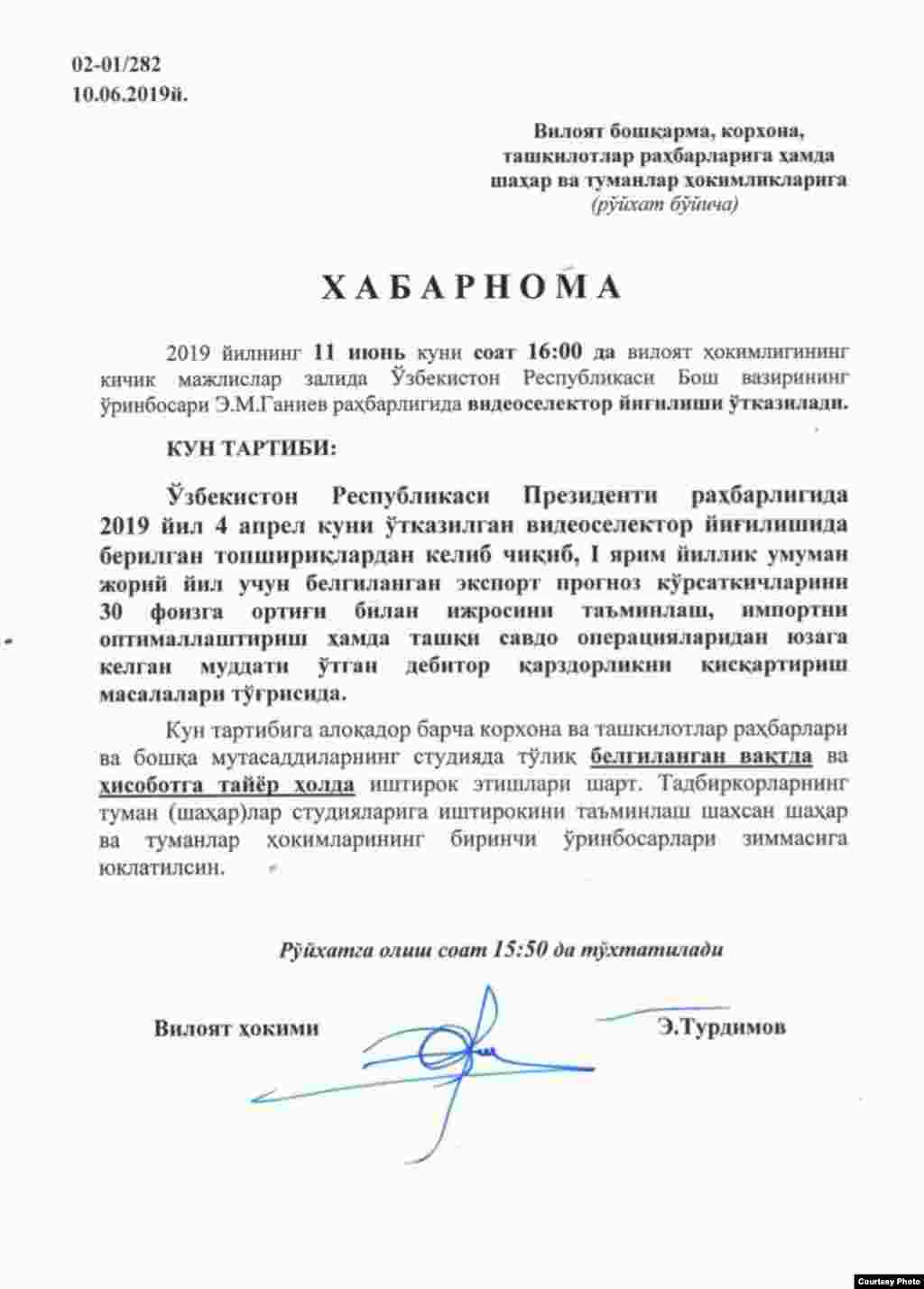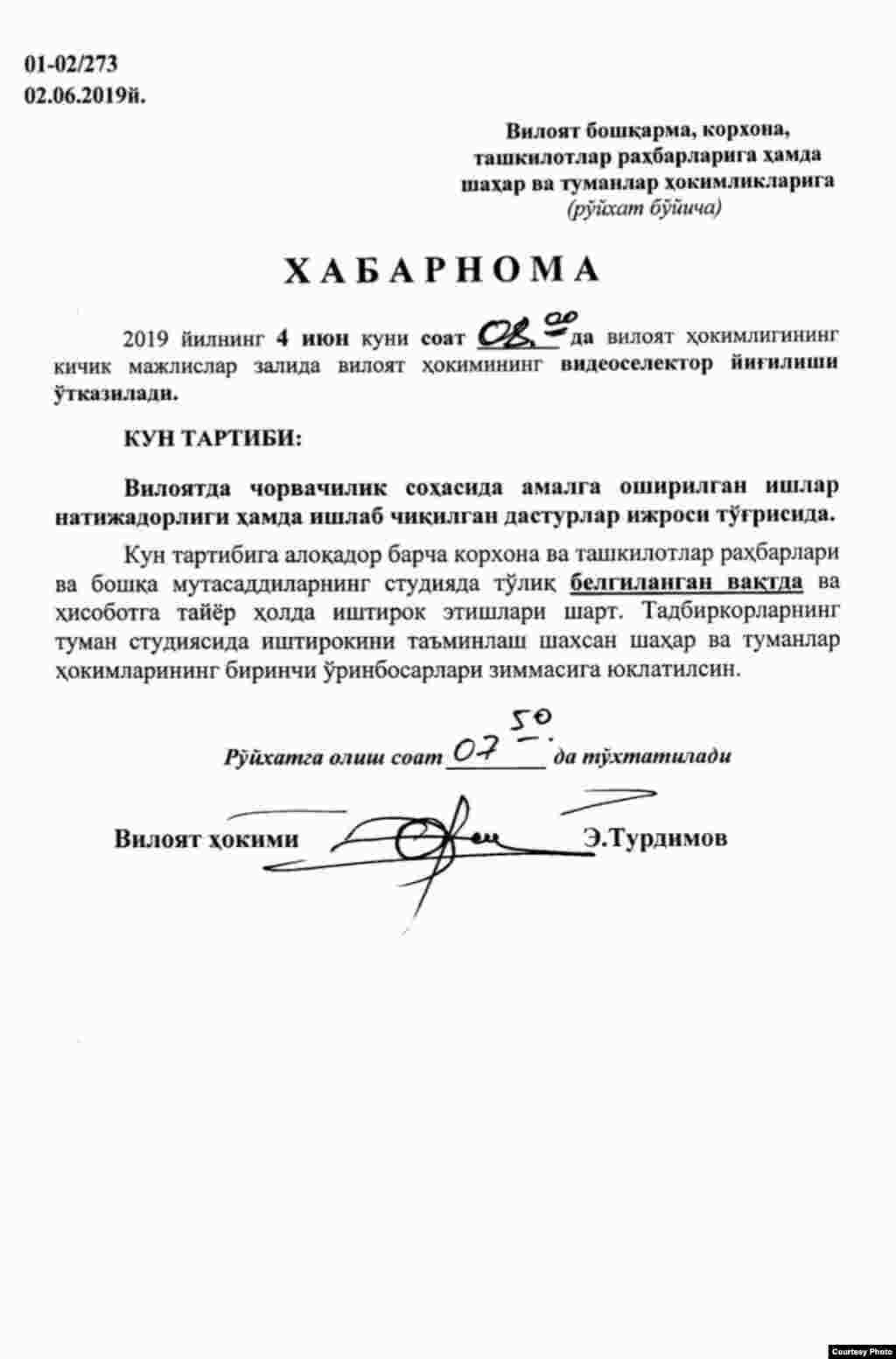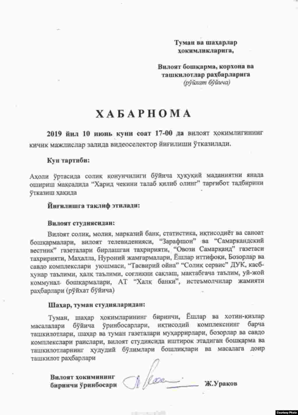 Мажлисбозлик хроникаси: Самарқанд вилоят ҳокими ўринбосари юбораëтган мажлис чақирувлари
