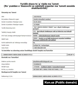 “Get-Green Energy Trade” МЧЖ 4 ой олдин ташкил этилган. Бугунги кунгача, etender.uzex.uz платформасидаги маълумотларга эътибор қаратилса, на қуёш фотоэлектр станцияларини ўрнатиш билан боғлиқ ва на ўз фаолиятига доир тендерларда иштирок этган. Танлов комиссияси қарийб 3 млрд сўмлик лойиҳани унга “совға” қилган гўё”, деб ёзган “Kun.uz”.