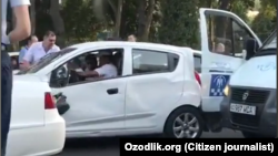 Озодликка келган видеода бир қанча милиция ходими тирбанд кўчада оқ рангли "Спарк" машинасини тўхтатишга уринаётгани, ҳайдовчи эса атрофдаги бир қанча машиналарни туртиб қочаётганини кўриш мумкин.