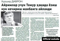 Ўзбекистон халқ шоири Хуршид Даврон Амир Темурнинг 685 йиллиги арафасида эълон қилинган суҳбатда ушбу тарихий шахс ҳақида яратилган илмий ва бадиий асарларни кескин танқид қилди (“XXI аср” газетаси, 8 апрель).