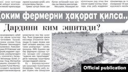 Маълум бўлишича, Бўстон туман прокурори ҳам оммавий ахборот воситаларида чоп этилган танқидий мақолаларга нисбатан ўз вақтида прокурорлик назоратини қўллаш масаласини ҳал этиш ўрнига фермерларни идорасига чақириб, уларга тазйиқ ўтказган.