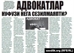 “Энг оғриқли нуқталаридан бири – “чўнтак адвокатлар”га дахлдор. Давлат томонидан тақдим этилган адвокатларни танлашнинг очиқ-ошкора тартиби йўқлиги боис айрим терговчилар ўзига таниш адвокатларни чақириб, айбланувчига таъсир ўтказиш ҳоллари учраб туради. Мисол учун, Тошкент шаҳрида ўтган йили давлат томонидан адвокатларга 7 миллиард сўмдан зиёд маблағ ажратилган бўлса, ушбу маблағнинг тенг ярми 20 та адвокатлик фирмасига берилган, ҳолбуки пойтахтда 746 та фирма мавжуд”, деб ёзган газета.