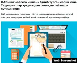 Xabar.uz ахборот-таҳлилий портали раҳбари Абдуғани Абдураҳмоновга кўра, ОАВнинг реклама тушумлари ҚҚС солиғидан озод этилиши керак.