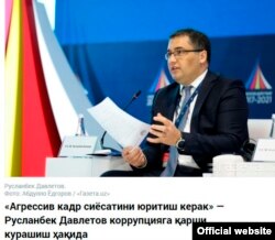 Ўзбекистон адлия вазири Русланбек Давлетов коррупцияга қарши курашиш борасида айнан қандай чора-тадбирларни кўриш кераклиги ҳақидаги фикрлари билан ўртоқлашди (www.gazeta.uz, 15 ноябрь).