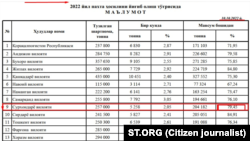 Mazkur sanaga doir yana bir jadvalda aniqlik kiritilgan ma’lumotga ko‘zimiz tushdi. Unda “mavjud bo‘lmagan tonna” alohida ustun sifatida ko‘rsatilgan. Unda respublika miqyosida 193,1 ming tonna paxta kamomadi qayd etilgan. Ya’ni o‘zaro hisobotlardagi tafovutlarning o‘zi bu sohada katta ko‘zbo‘yamachiliklarni fosh qilmoqda.