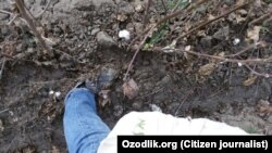 "Мана бизнинг пахтадаги ҳолимиз. Коллеж ўқувчиларимиз. Мажбур чиқаряпти пахтага. Лойда пахта теришга мажбурмиз. Андижон вилояти Бўз тумани".