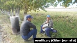 ҚУЙИЧИРЧИҚ ва ЧИНОЗ. “Инсон ҳуқуқлари ҳимочиси Елена Урлаеванинг хабар қилишича, у Тошкент вилоятининг Қуйичирчиқ ва Чиноз туманларида мажбурий меҳнат ҳолатини ўрганиш учун даладаги теримчилар билан суҳбатлашган. Қуйичирчиқдаги суҳбат жараёнида ички ишлар ходимлари ўз ўрнига меҳнат биржасидаги эркакларни теримга олиб келгани маълум бўлди. Ички ишлар ходимлари ўз ўрнига пахта тераётган ҳашарчиларни қўриқлаб ўтирибди.
