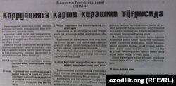 Давлат идоралари ходимлари коррупция хусусида хабар бериши шарт
